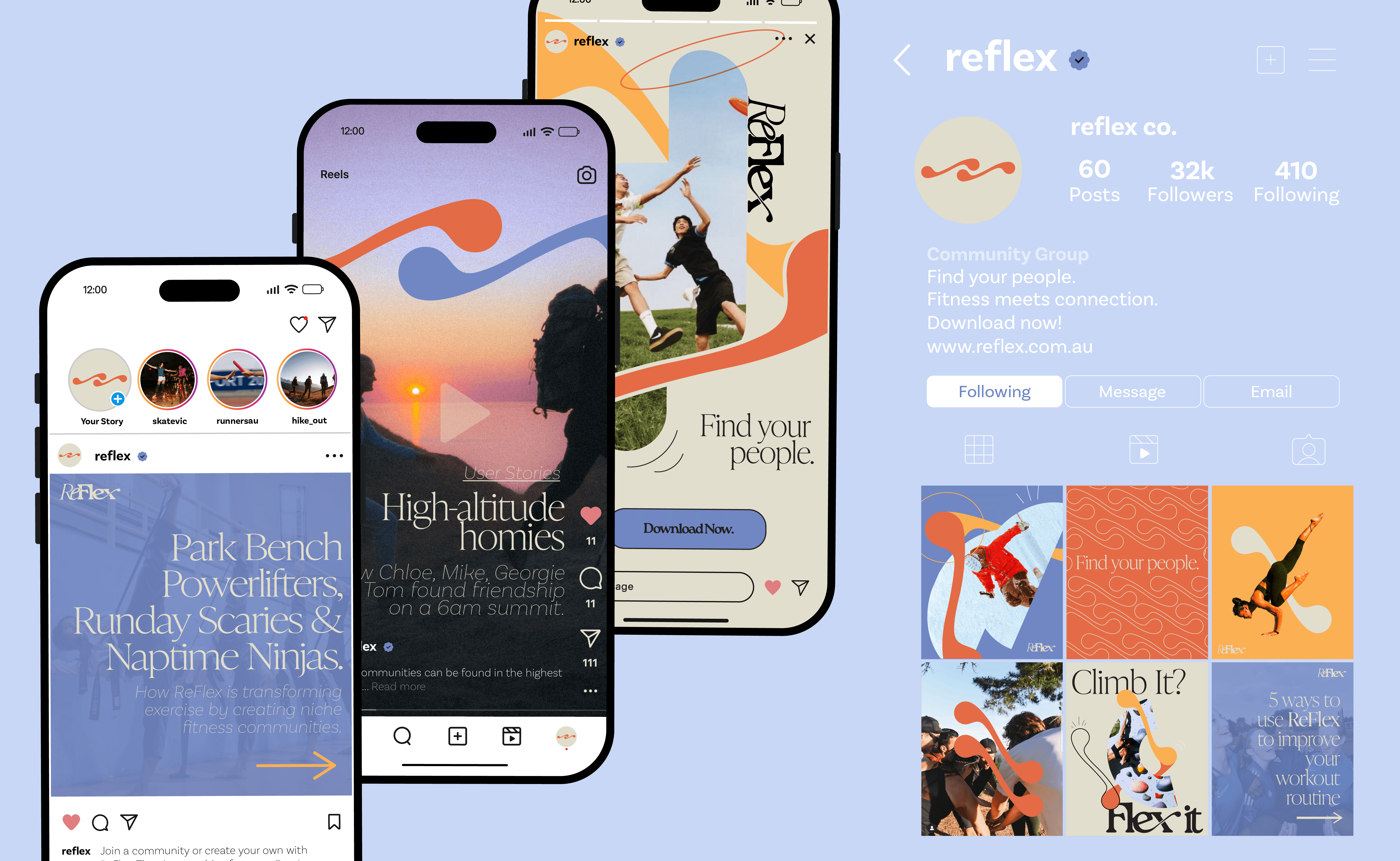 ReFlex marries fitness with relationships, encouraging the exploration and sharing of niche interests as a means of fostering intimate fitness communities. In turn, this promotes a positive online experience underpinned by a distinct sense of personal curation and individuality.